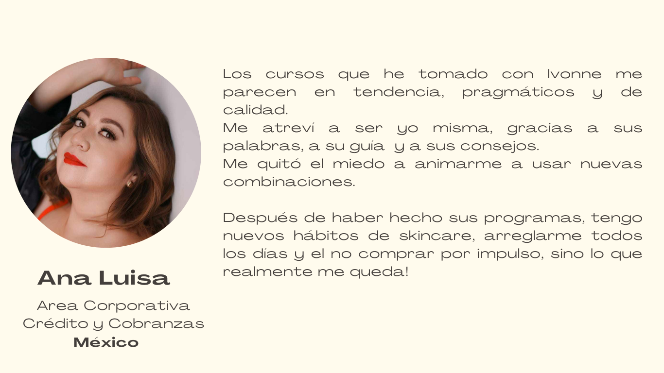 Natalia aprendió a elegir su atuendo para el evento de fin de año de su empresa, ¡y tú también puedes aprender y lucir radiante! Una de las principales preocupaciones de Natalia al iniciar su curso de Imagen Femenina eran los eventos sociales. Durante la semana, ella tenía claro su atuendo y el mensaje que quería…